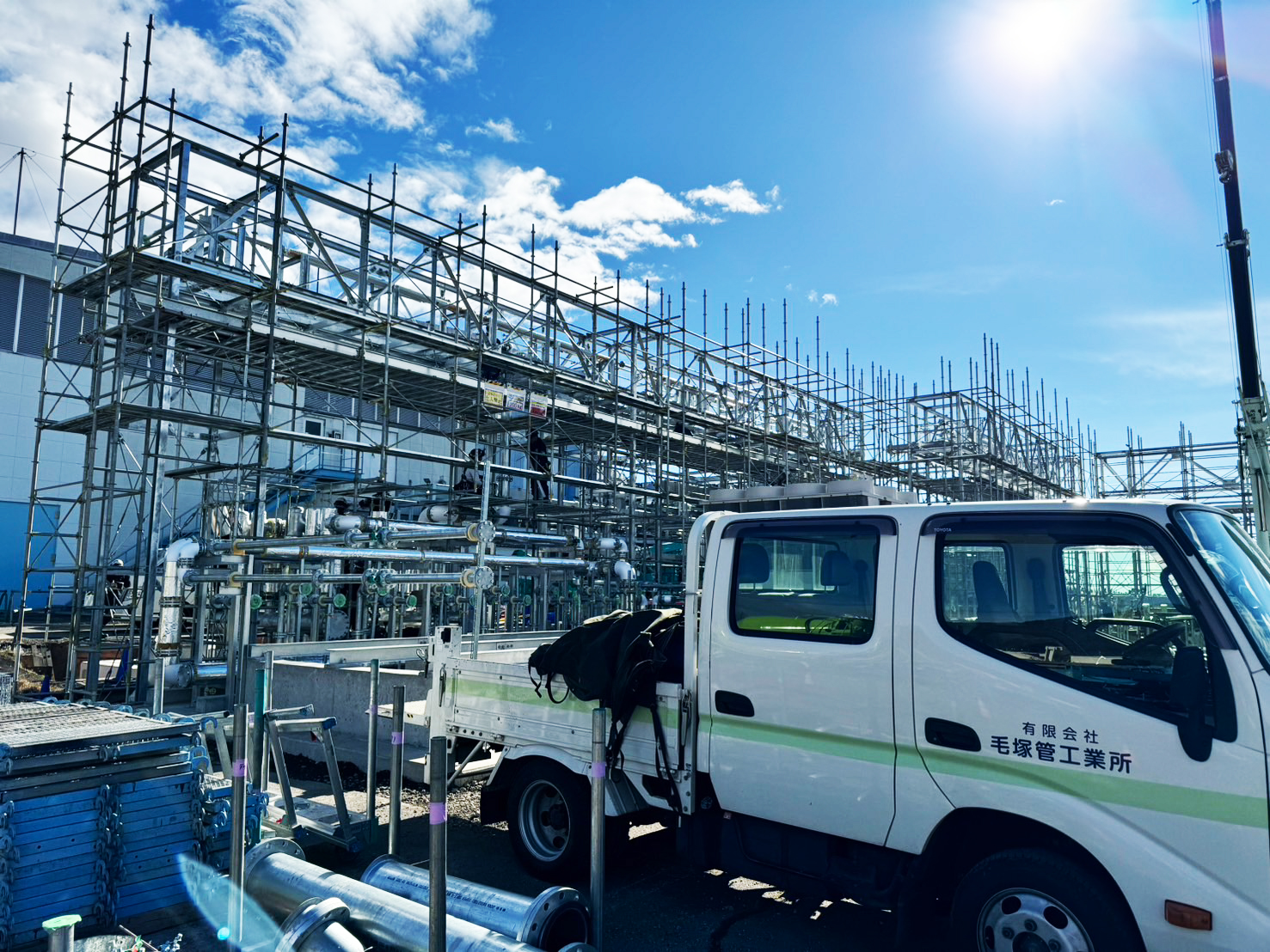 毛塚管工業所は、給排水・衛生配管工事、空調配管・消火設備工事、プラント配管・加工管制作などさまざまな配管工事を通じて、地域のインフラ整備や快適な生活環境の構築に貢献しています。施工管理技士や2級建築士などの有資格者が在籍しており、高い技術力と専門性を持って業務に取り組んでいます。